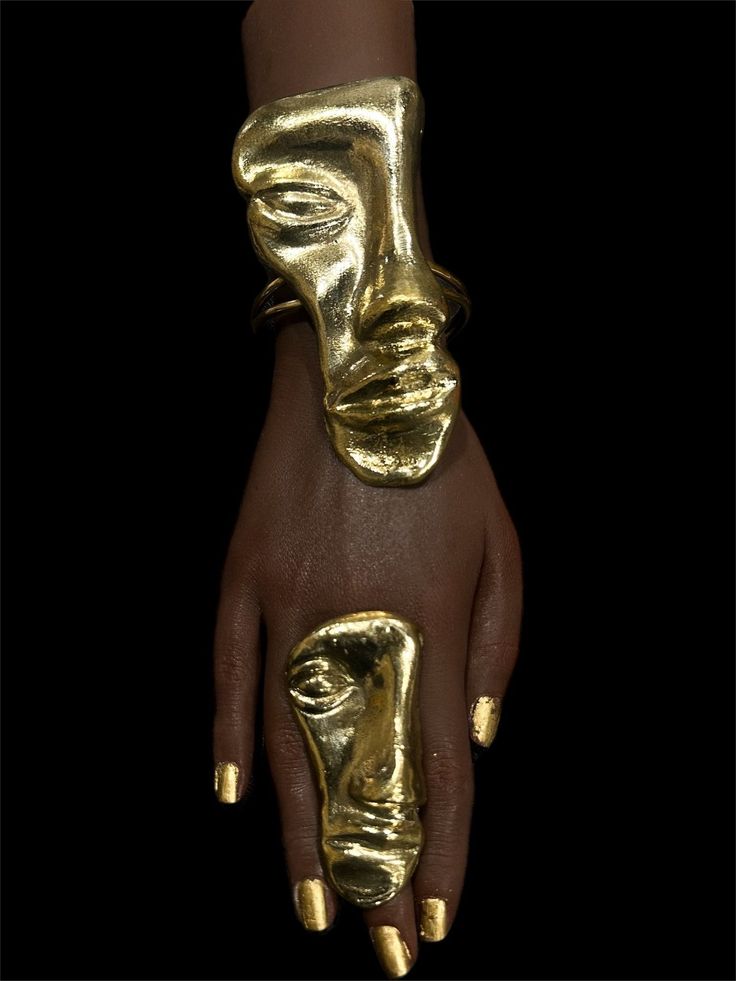 Every piece is sculpted in wax, wood, or silver and shaped by stories of her Khoi ancestry, womanhood, spirituality, and South Africa's cultural landscape.
